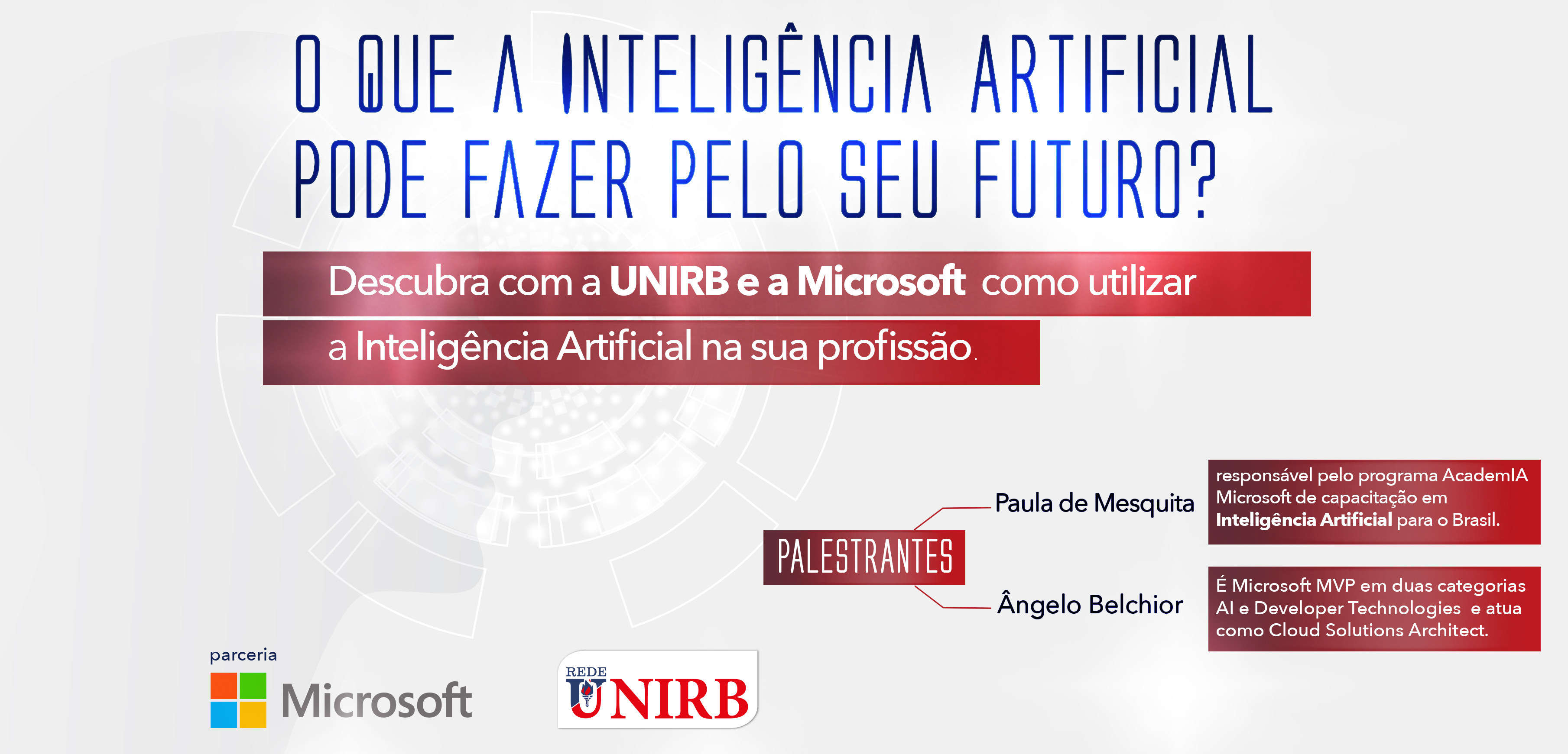 A Faculdade UNIRB Aracaju promoverá na próxima quinta-feira (5), a palestra “O que a Inteligência Artificial pode fazer pelo seu futuro?”. O evento em parceria com a Microsoft será conduzido pelo palestrante Ângelo Belchior, que possui 18 anos de experiência em TI e pela responsável pelo Programa Academia Microsoft de Capacitação em Inteligência Artificial para o Brasil, Paula Nepomuceno. O encontro é gratuito e aberto para toda comunidade acadêmica. Mais informações podem ser obtidas pelo telefone (79) 3259-4025.